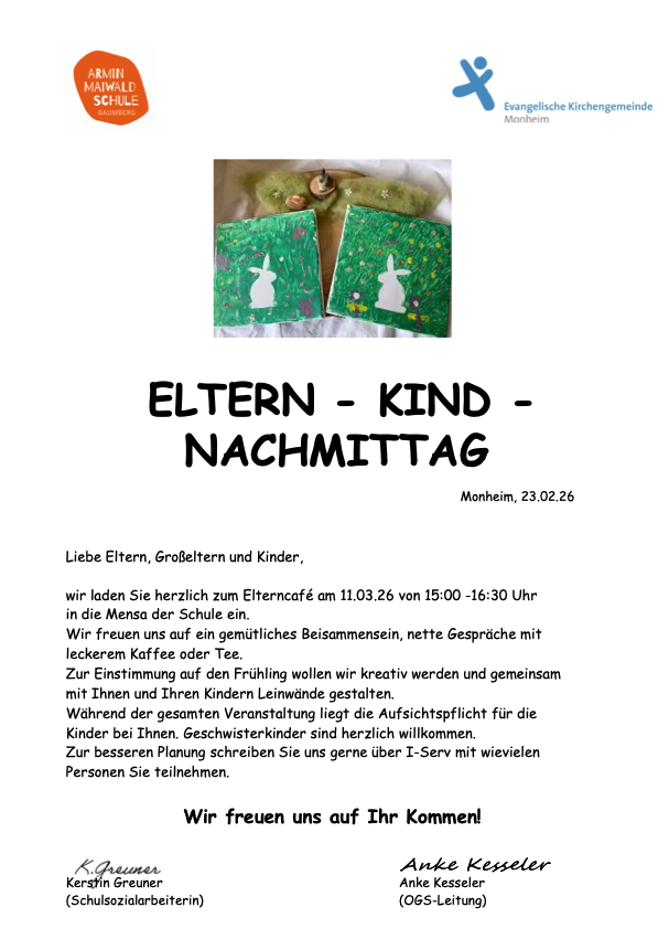 wir laden Sie herzlich zum Elterncafé am 11.03.26 von 15:00 -16:30 Uhr